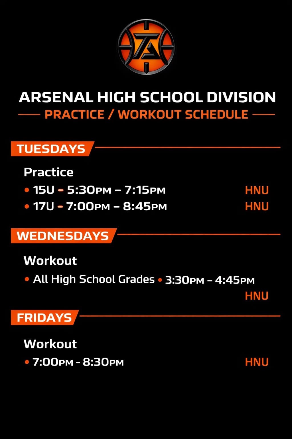 High school division PRACtice / workout schedule